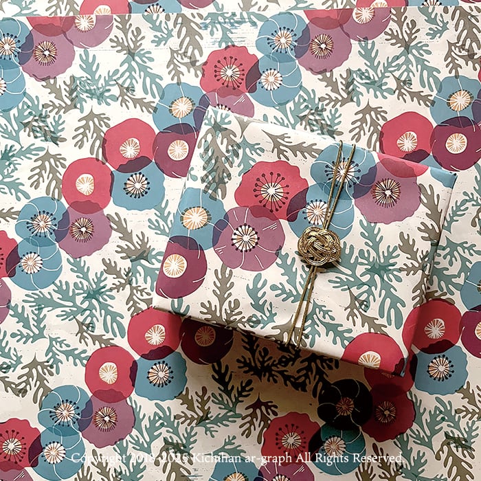 芥子 青 赤 ポピー 花 mustard 柄 文様 和柄 パターン ラッピング ラッピングペーパー 包装紙 イラスト 掛け紙 ギフト ガーランド 贈り物 レトロ モダン 和 紙モノ 北欧 袋 ぽち袋 ハンドメイド ブックカバー 紙モノ 紙好き デザイン インテリア 装飾 封筒 ボタニカル