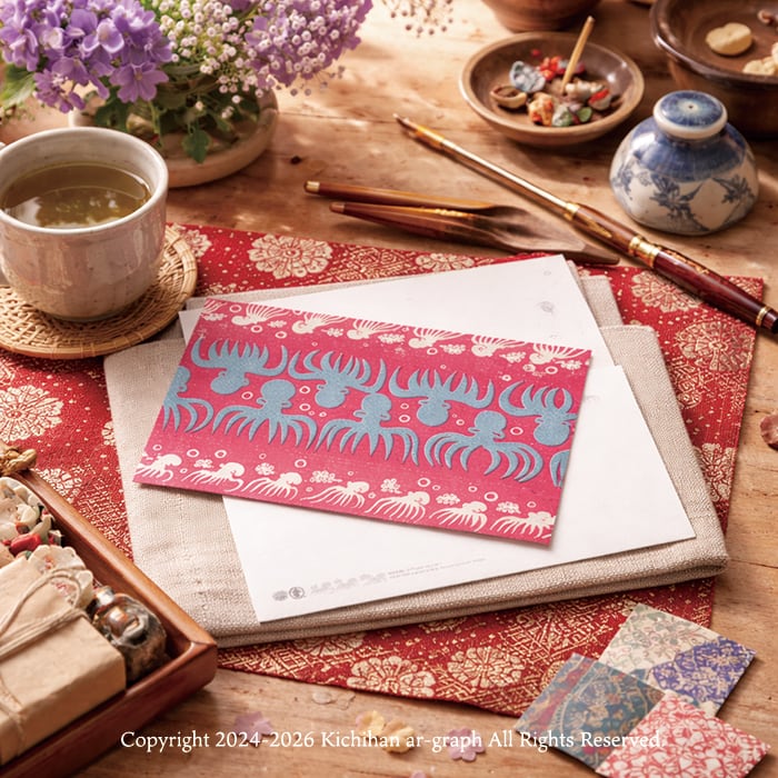 イラスト メッセージカード プレゼント 絵葉書 パターン 和柄 イラスト 文様 ポストカード 絵葉書 ハガキ レトロ モダン 和 紙モノ 手紙 北欧デザイン 文通 和モダン 文様 夏 海 海水浴 オクトパス タコ 蛸 絵葉書