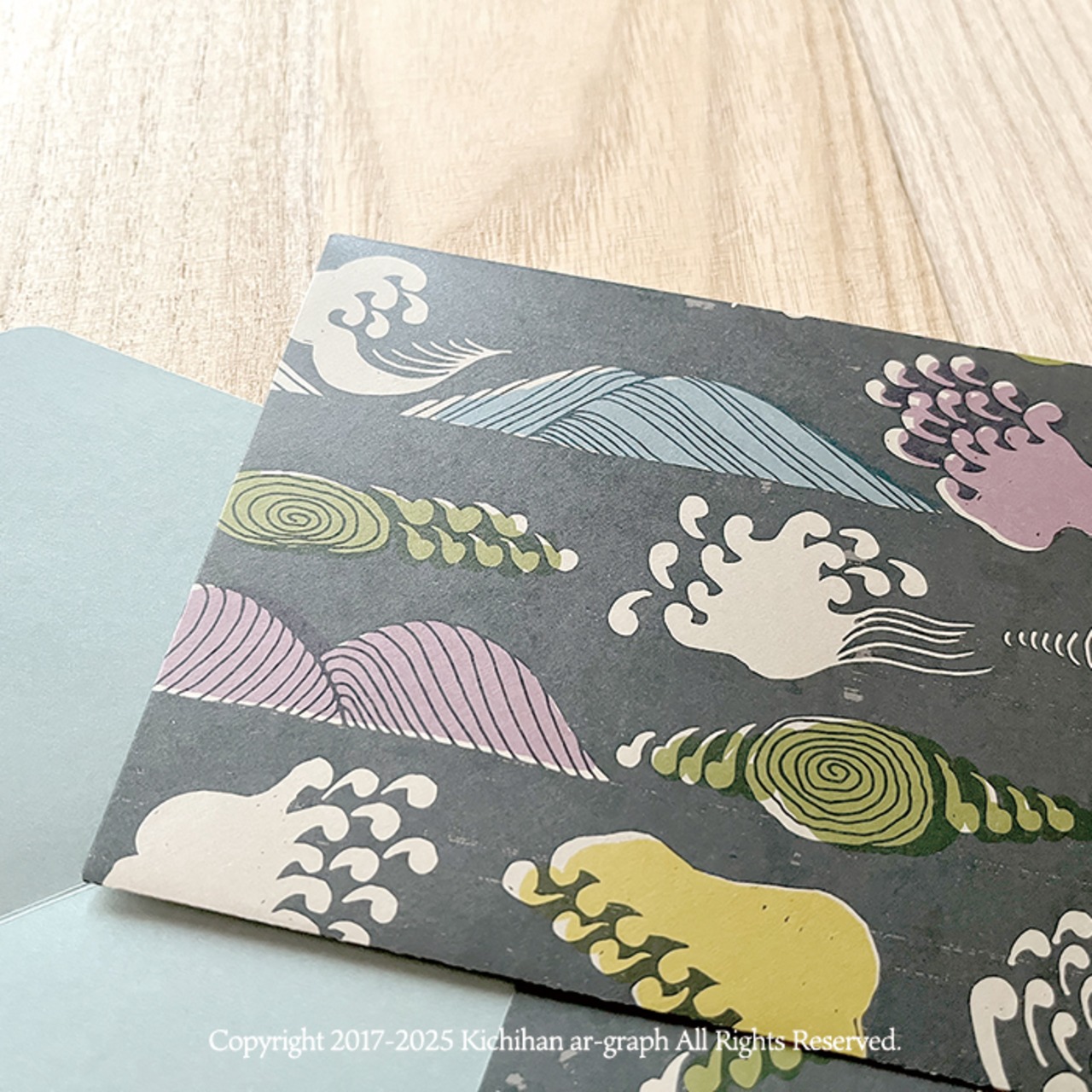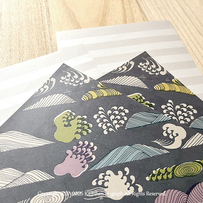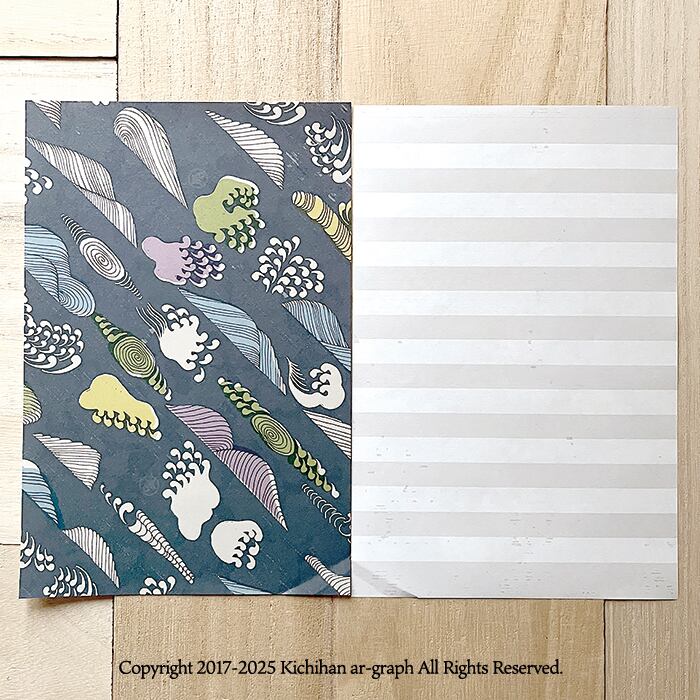 便箋 封筒 手作り 文様 パターン 和柄 図案 吉斑 きちはん デザイン イラスト 植物 メッセージカード 手紙 メモ紙 北欧 紙もの 紙好き ハンドメイド オリジナル kichihan 夏 秋 冬 波 レトロモダン