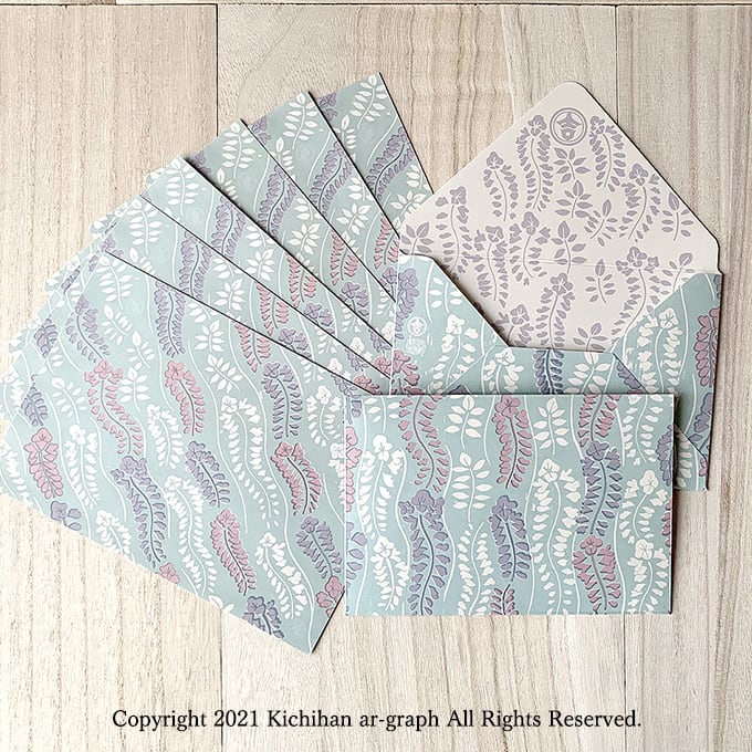 便箋 封筒 手作り 文様 パターン 和柄 図案 吉斑 きちはん デザイン イラスト 植物 メッセージカード 手紙 メモ紙 北欧 紙もの 紙好き ハンドメイド オリジナル kichihan 春 夏 季節の花 野花 藤 藤の花 花 モダン レトロ