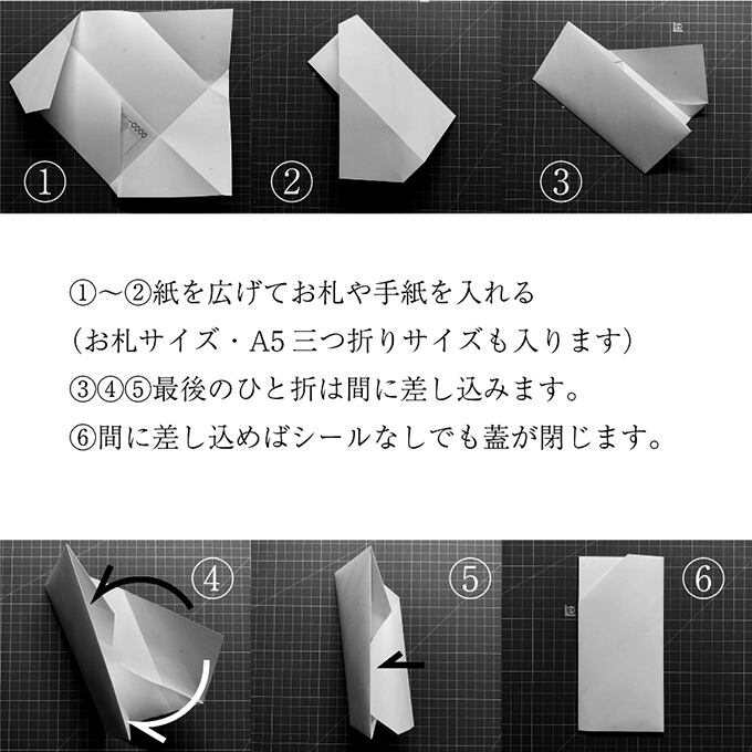 お札入れのみならず、便箋などの紙も入れられますのでメッセージ入れ封筒としてもご活用いただけます。