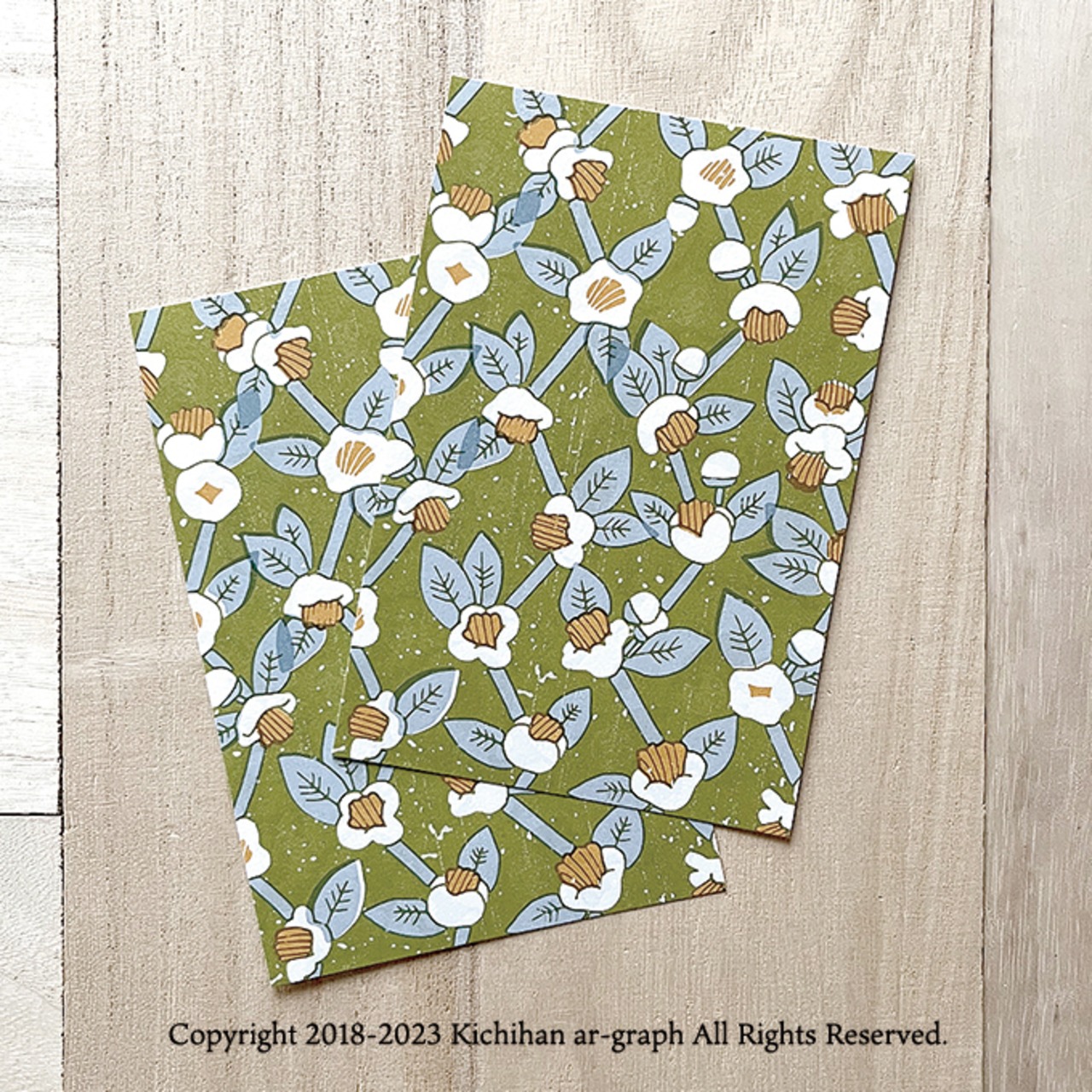 パターン 文様 紙好き メッセージカード プレゼント パターン イラスト 文様 ポストカード 絵葉書 ハガキ レトロ モダン 和 紙モノ デザイン 北欧 挨拶状 手紙 レター 文通 デザイン インテリア 装飾 文具 茶 茶の花 茶の木 秋  文様 ボタニカル 植物パターン