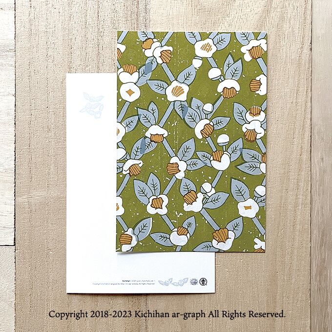 茶の花 文様 葉書 レトロモダン ポストカード/2枚